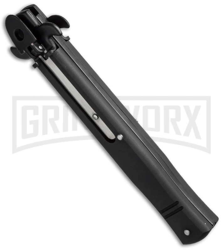 AKC 9″ Tactical Leverletto Black Automatic Knife – Satin Flat Grind