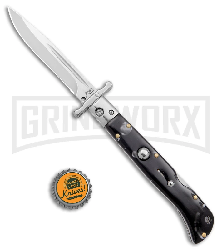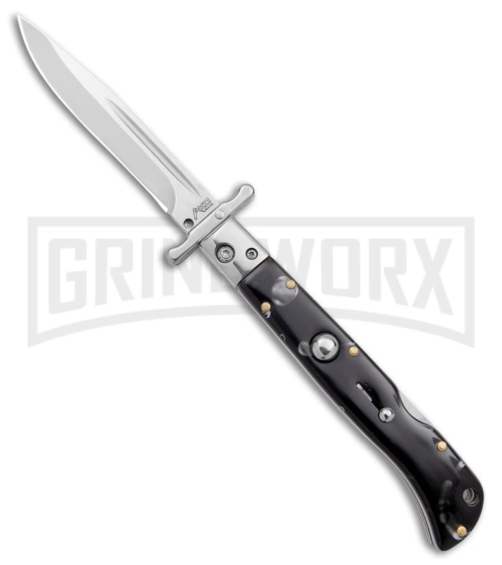 Italian Style 9″ Roma Black Marbled Pearlex Auto Swinguard – Polished Plain